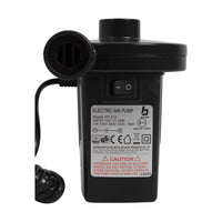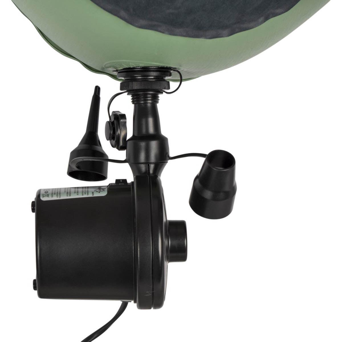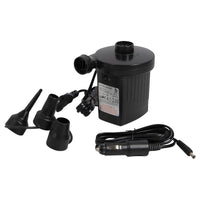 Diese Pumpe kann sowohl zum Aufblasen als auch zum Ablassen von Luftmatratzen verwendet werden. Die Elektropumpe ist sowohl für einen 12-Volt- als auch für einen 230-Volt-Anschluss geeignet. Die Pumpe hat einen Luftstrom von 230 Litern pro Minute. Die Pumpe wird mit verschiedenen Reduzierstücken geliefert. Dadurch können verschiedene Gegenstände in die Luft gesprengt werden.
