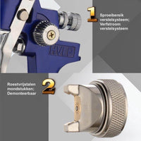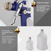 Applying an even and even layer is often the biggest challenge when working with a paint sprayer. This revolutionary paint sprayer from Ariko makes it a piece of cake. Thanks to a number of smart adjustments, users of this sprayer can paint like a professional. You can apply both lacquer and paint with this sprayer. There is a filter that ensures that an equal amount of paint always comes out of the nozzle. Due to the HVLP technique (High Volume Low Pressure) high volume and low pressure, more than 30% of paint is saved and you have virtually no overspray! The paint sprayer is suitable for painting almost all types of materials.