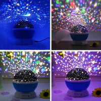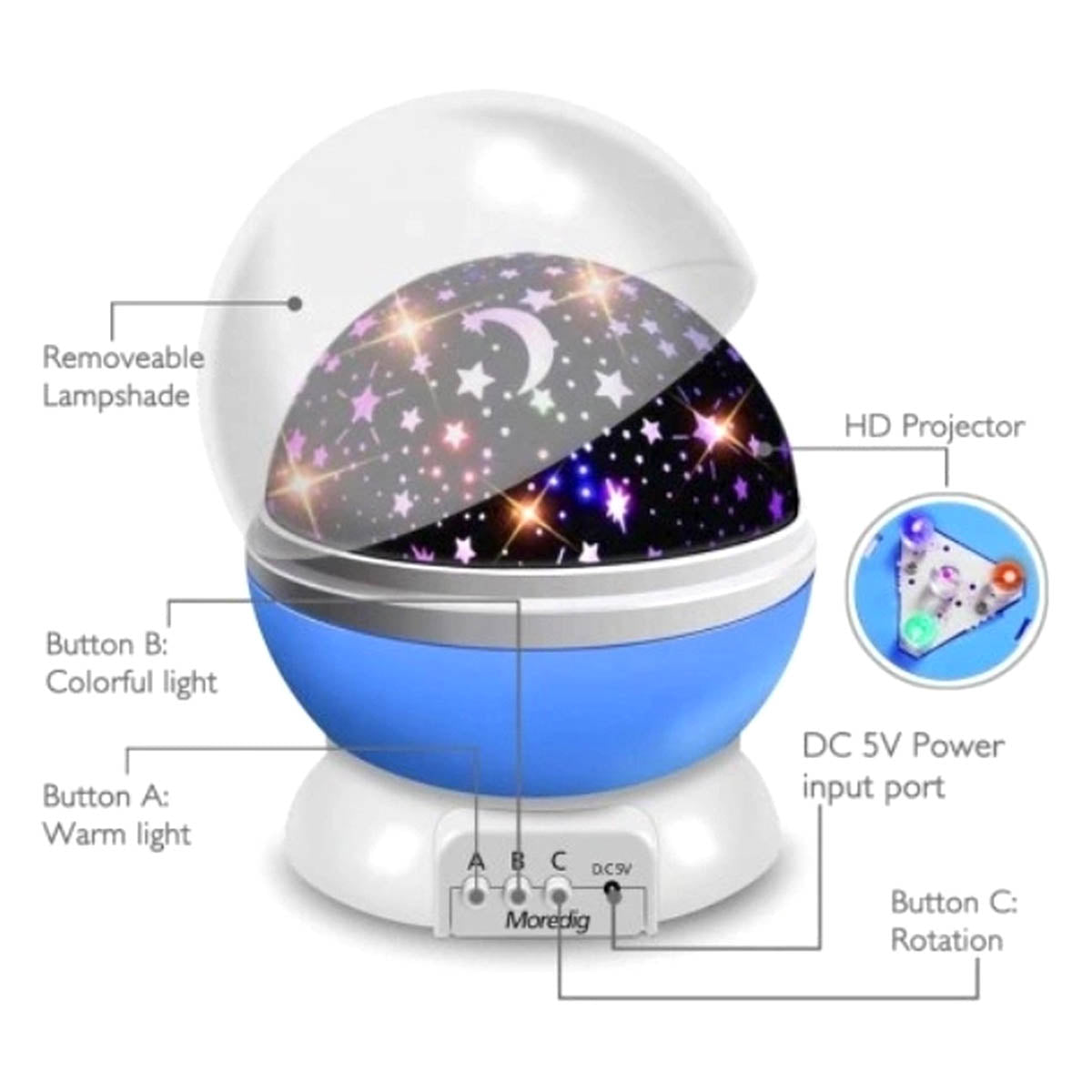 With this beautiful 360 degree rotating star projector night light, the stars and moon are projected in different colors throughout your child's room. The rotation calms your child and makes it easier to fall asleep!