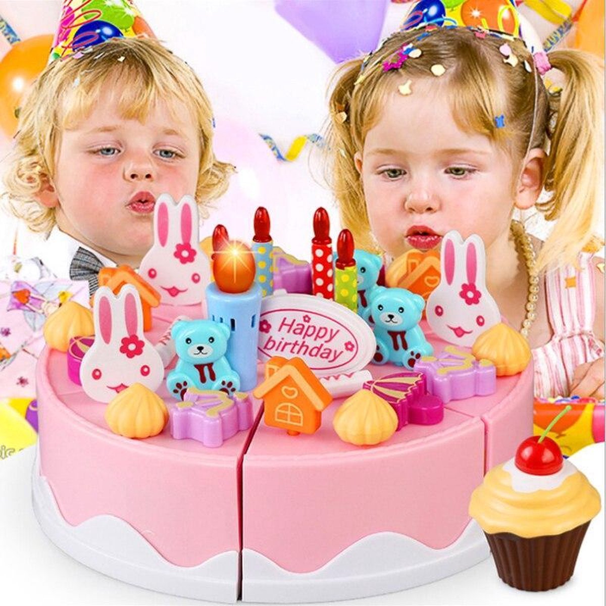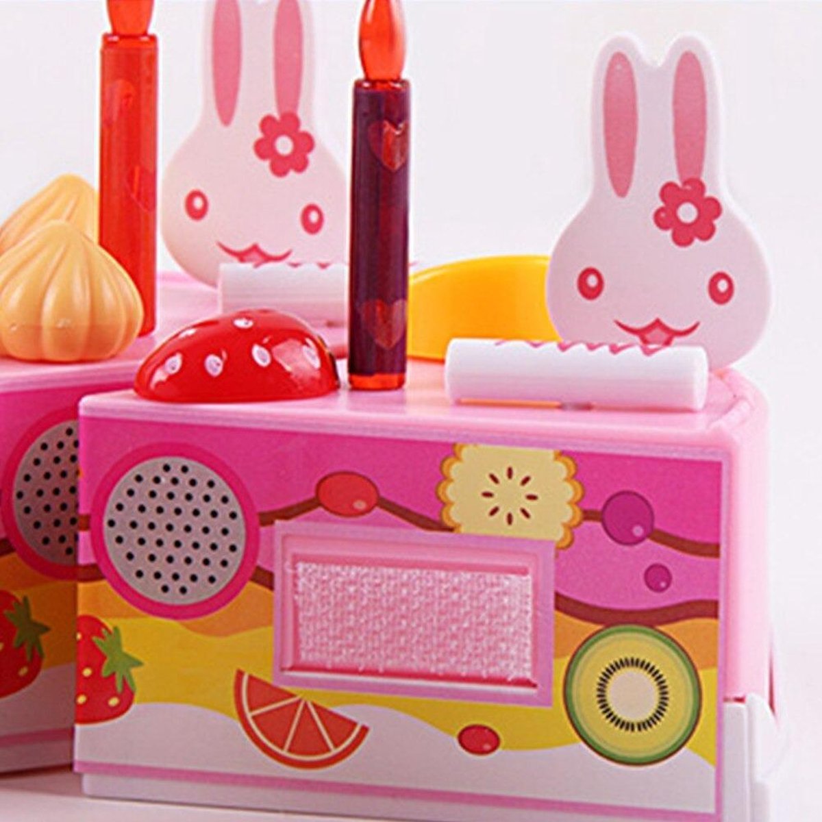 The candles burn and give applause and music after blowing out. There are more small birthday cake pieces in the set, which can be easily separated by the children using the included knives. >The colorful parts stimulate the imagination and stimulate creative thinking, in addition, the children move their hands and develop motor skills.