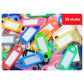 200 pieces of handy colored labels with paper strips for writing (1 side readable). A pack of 200 labels contains 25 to 27 different colored labels, all attached with a hardened steel key ring. The key labels have a size of 55x22 mm. This article is a Dutch quality product and not from Asian brokerage.