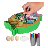 Facile à utiliser et sans gâchis. Cliquez simplement sur l'œuf dans le spinner et laissez l'appareil faire le travail de rotation pour vous. De cette façon, vous et votre enfant pouvez réaliser les meilleures créations sur les œufs avec les marqueurs fournis.