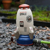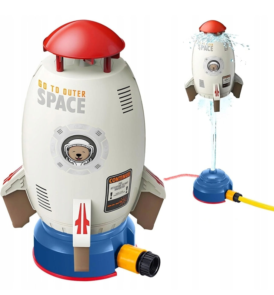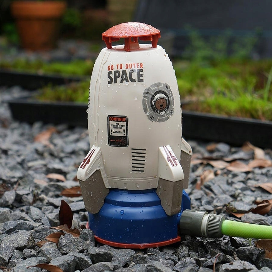 Bij mooi weer is spelen in de tuin een van de leukste activiteiten voor de kleintjes. Het raketvormige speelgoed spuit water in alle richtingen, zodat niemand droog komt te zitten. Zet de raket in elkaar bij het lanceerstation, sluit hem eenvoudig aan op de kraan en open langzaam het water. Onder de resulterende druk draait de raket en stijgt hij de lucht in, waarbij water van bovenaf wordt gesproeid om ze af te koelen in de zomerhitte.