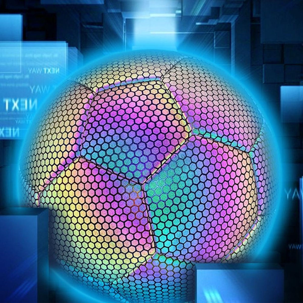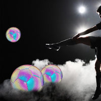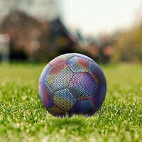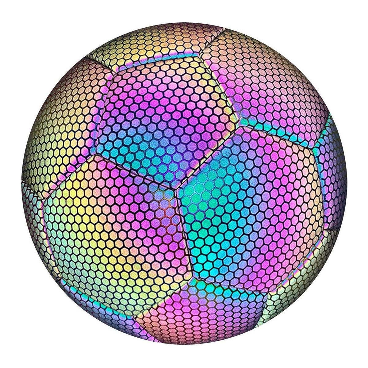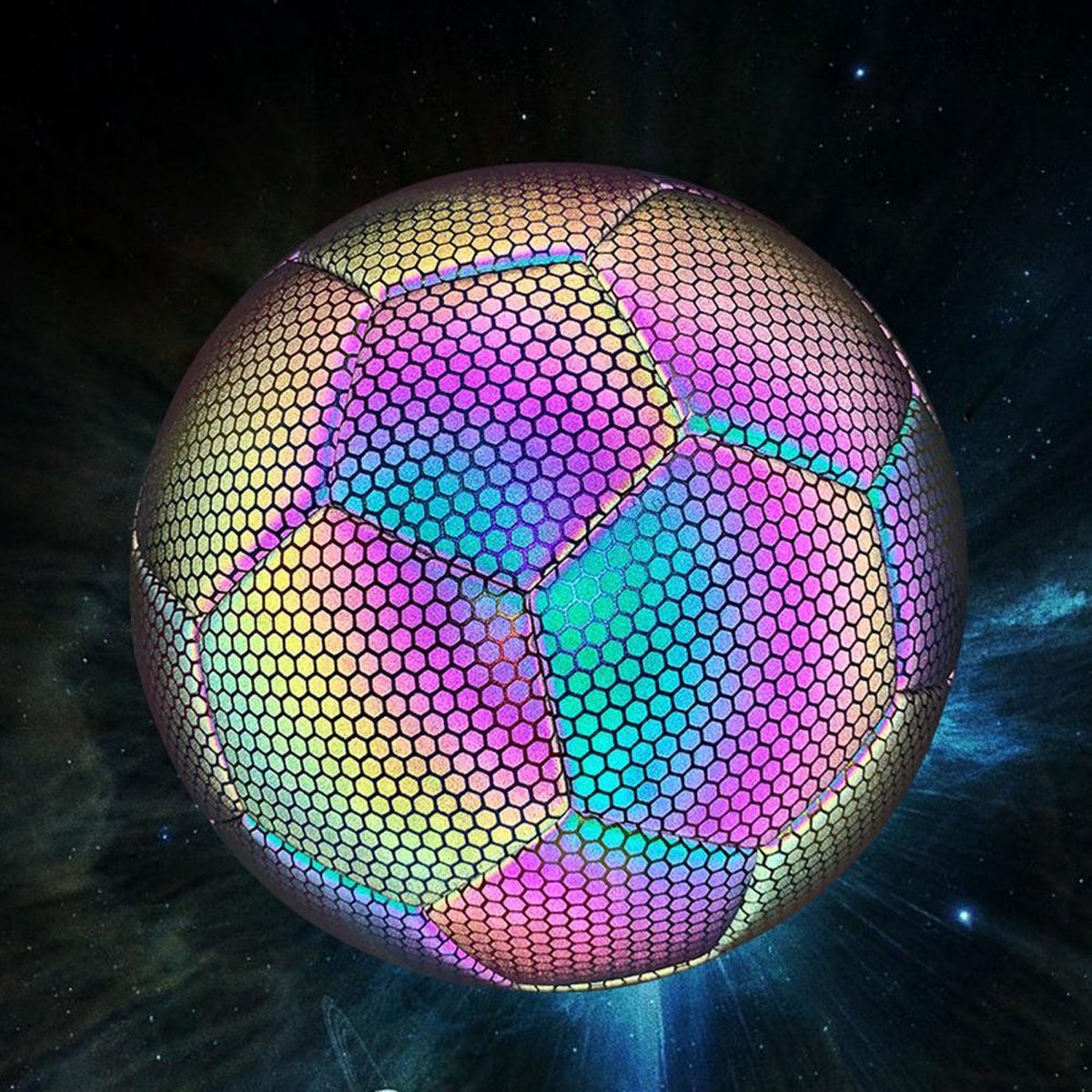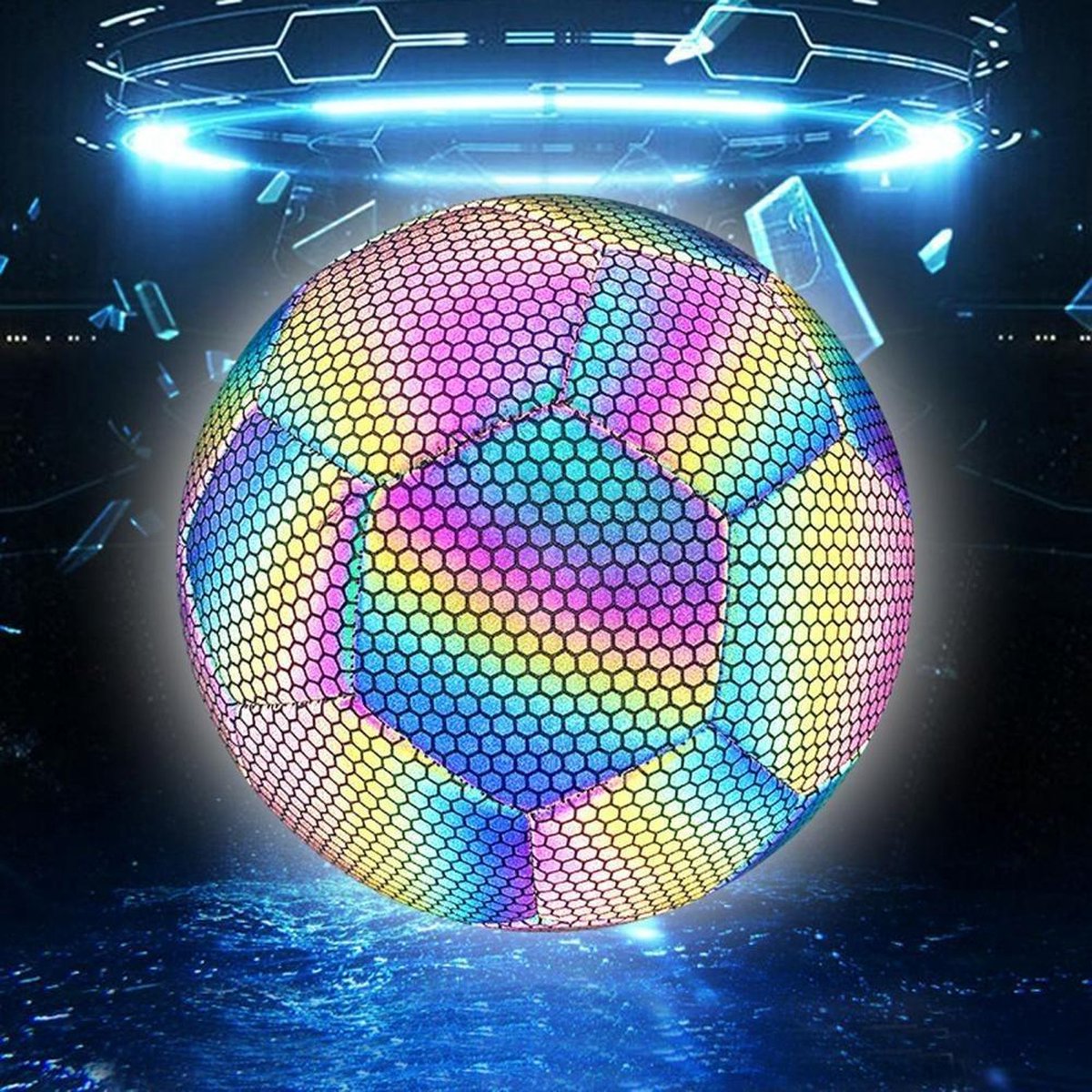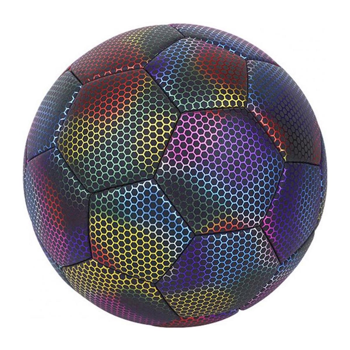 Ariko Lichtgevende Leren Voetbal | Reflecterend | Holografisch | Glow in the Dark | Unisex | Maat 5 | Met pomp , naald & handige opbergtas