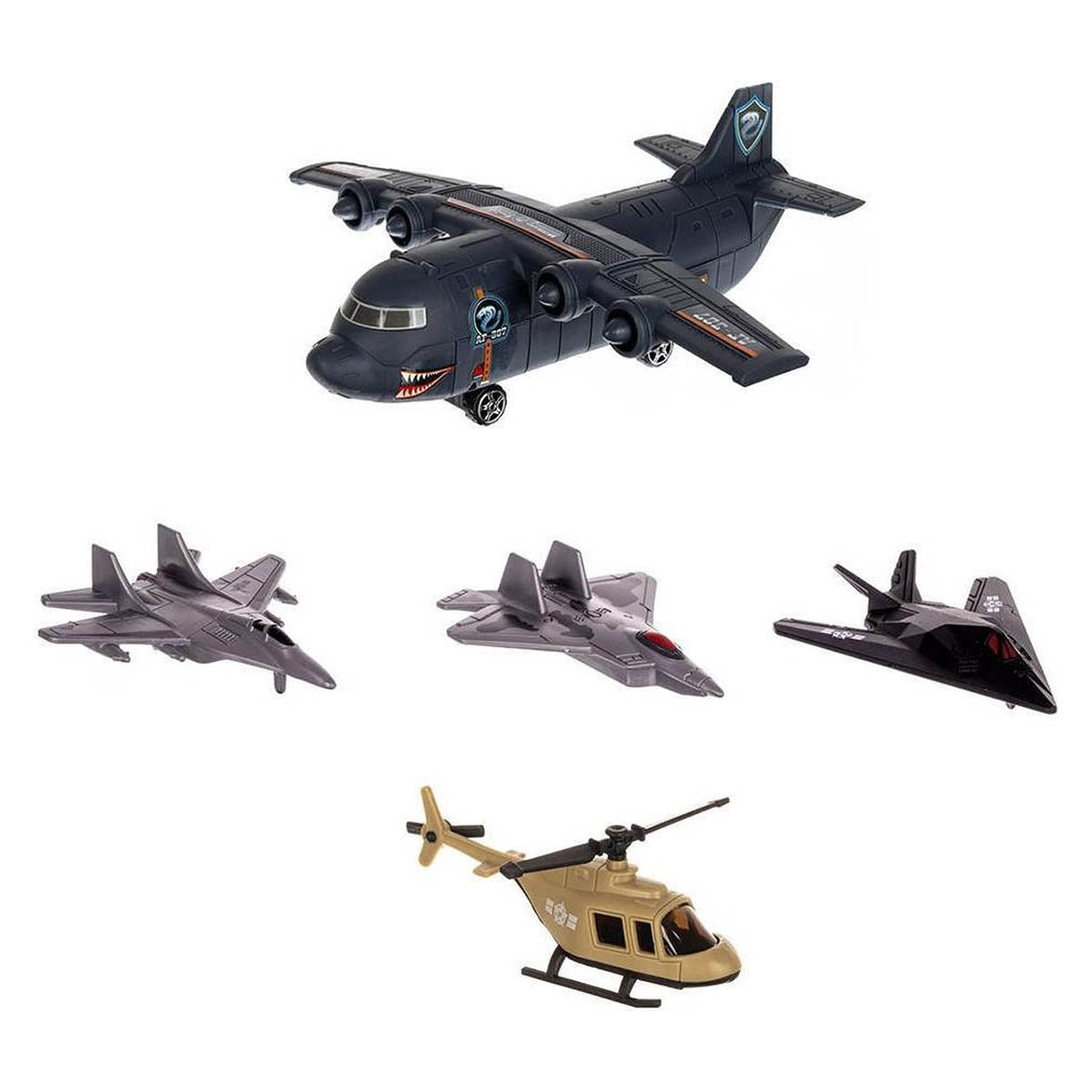 Bevat: 1x Groot vliegtuig 3x Kleinere vliegtuigen 6x Voertuigen