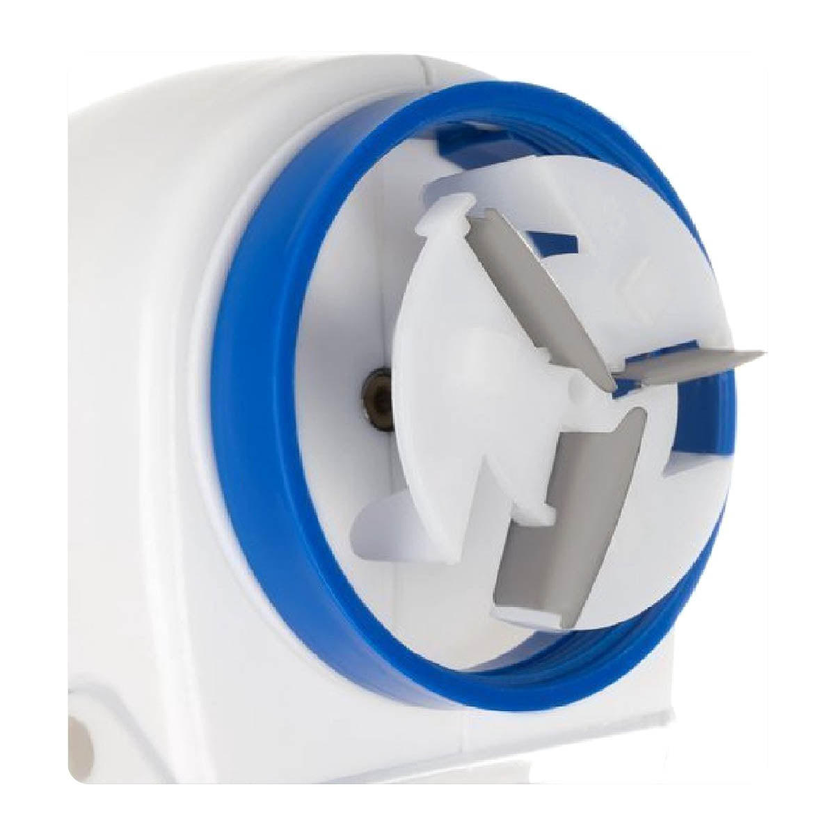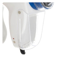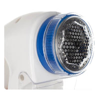 Zet hem simpelweg aan en beweeg de geperforeerde kop over de stof. Pluis, knoopjes en draadjes worden opgezogen in de gaten en afgesneden door de roterende messen, waarna ze in de verwijderbare pluisbak terecht komen.