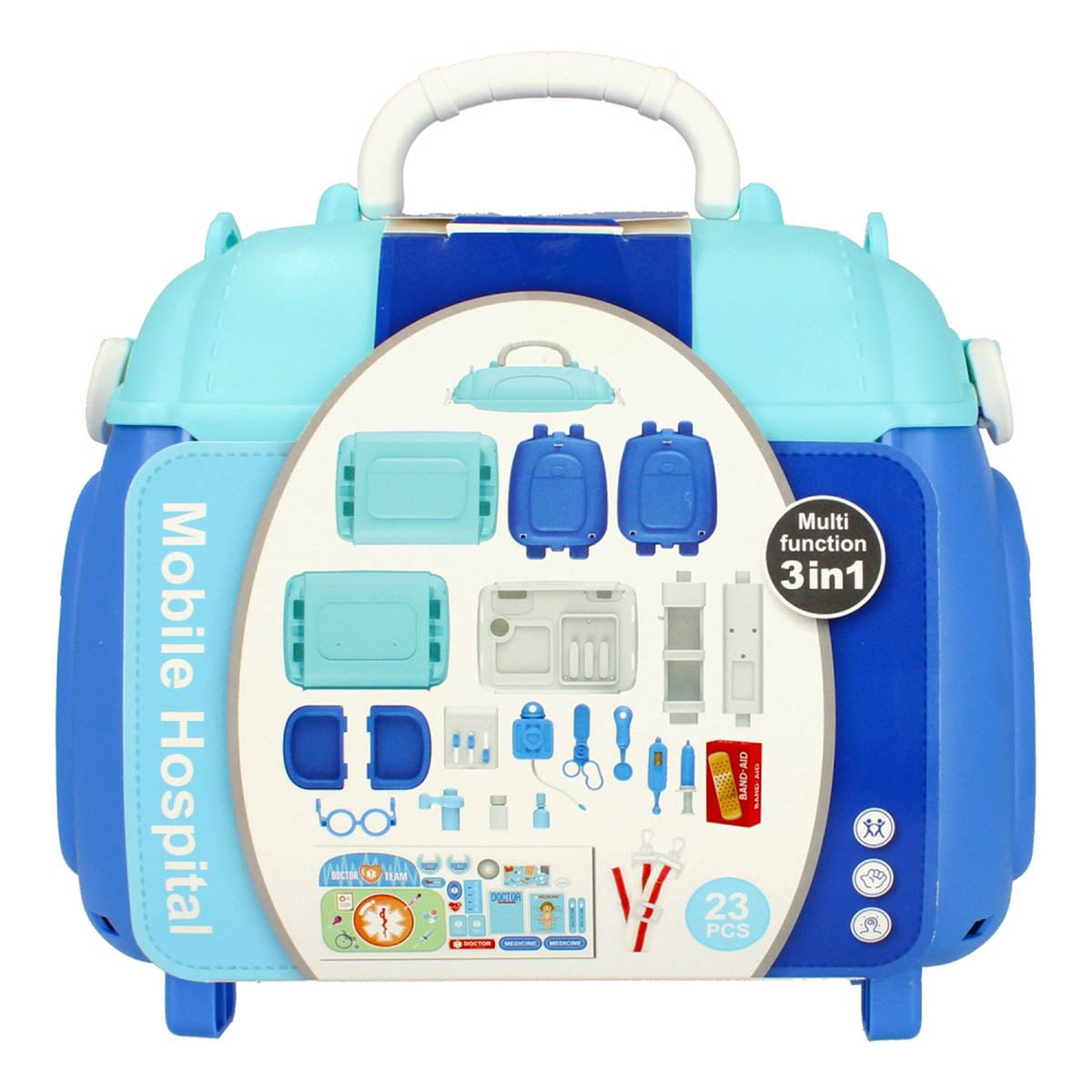 Ariko Speelgoed Koffer Dokter 23 delig - bloedrukmeter, scharen, medicijnen, onderzoekgereedschap en nog veel meer - handige meeneem koffer